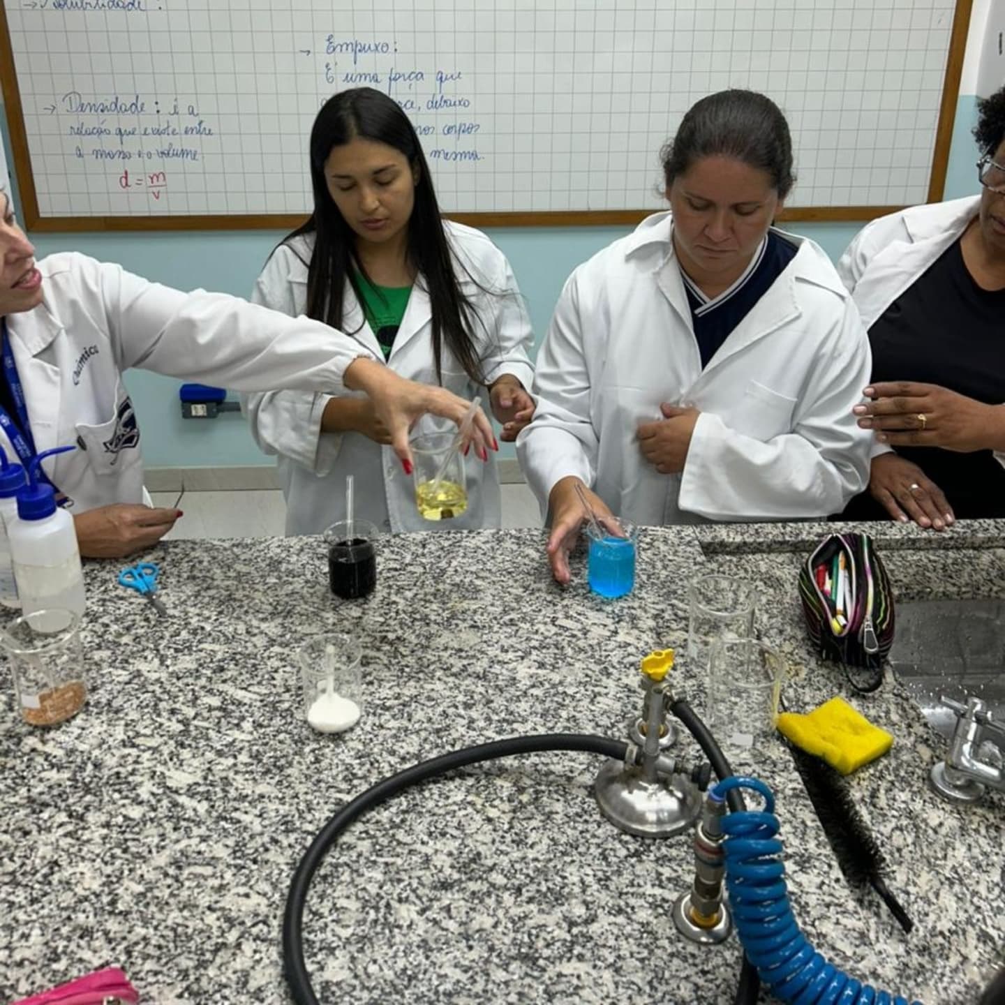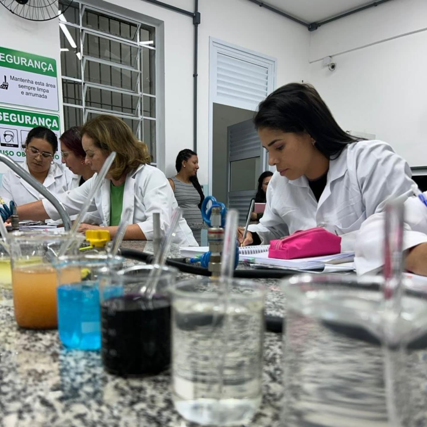 As futuras professoras, alunas do curso Normal Médio, participam, de forma sistemática, de aulas práticas nos laboratórios, a fim de adquirirem uma excelente bagagem no ensino de Ciências para Educação Infantil e Fundamental I.