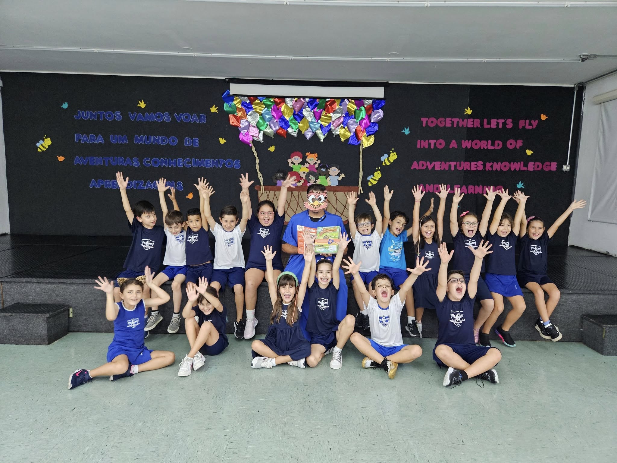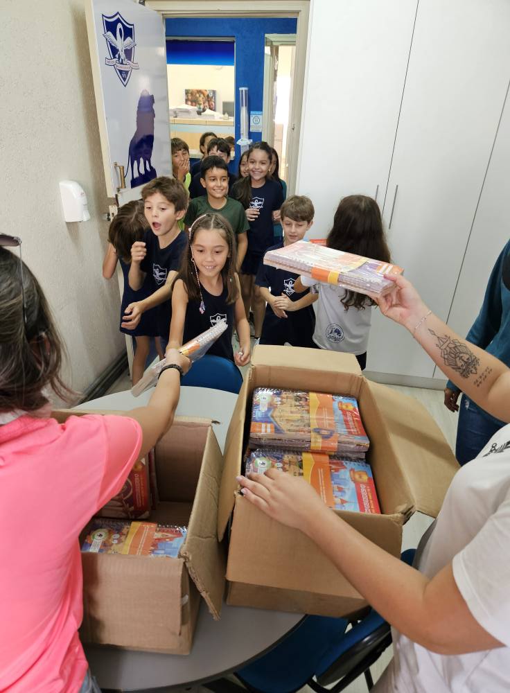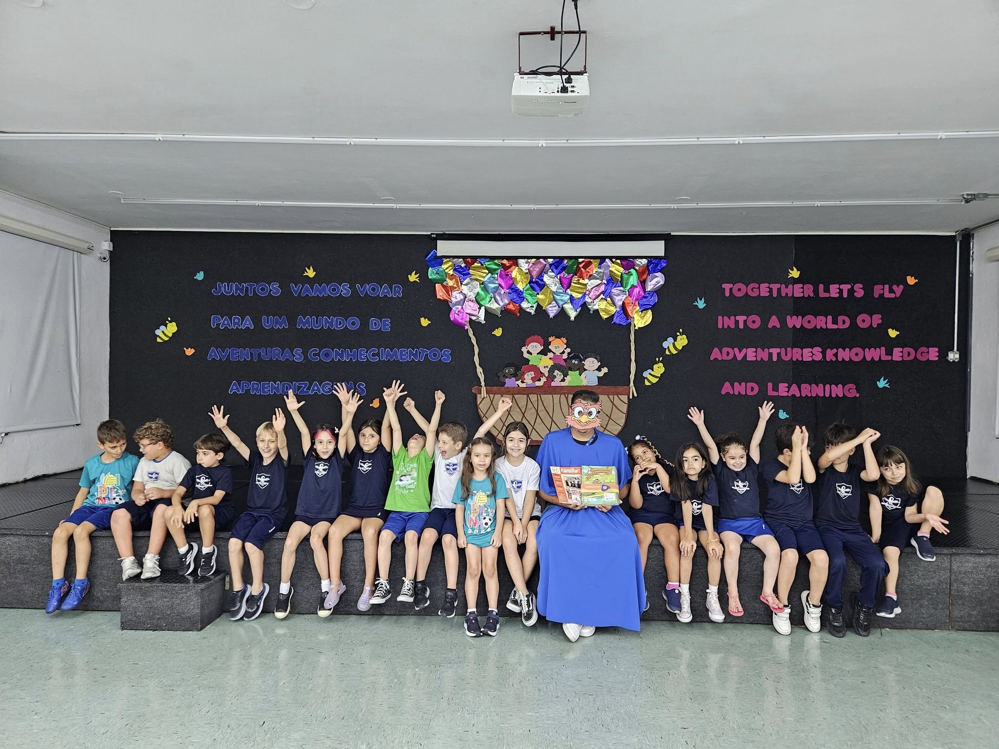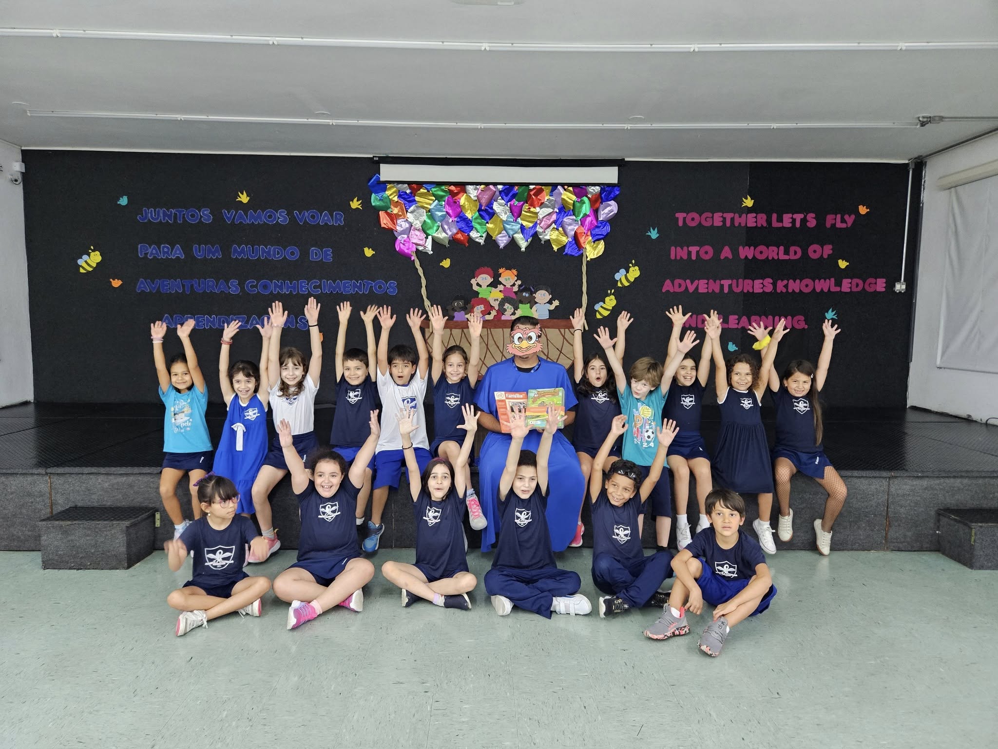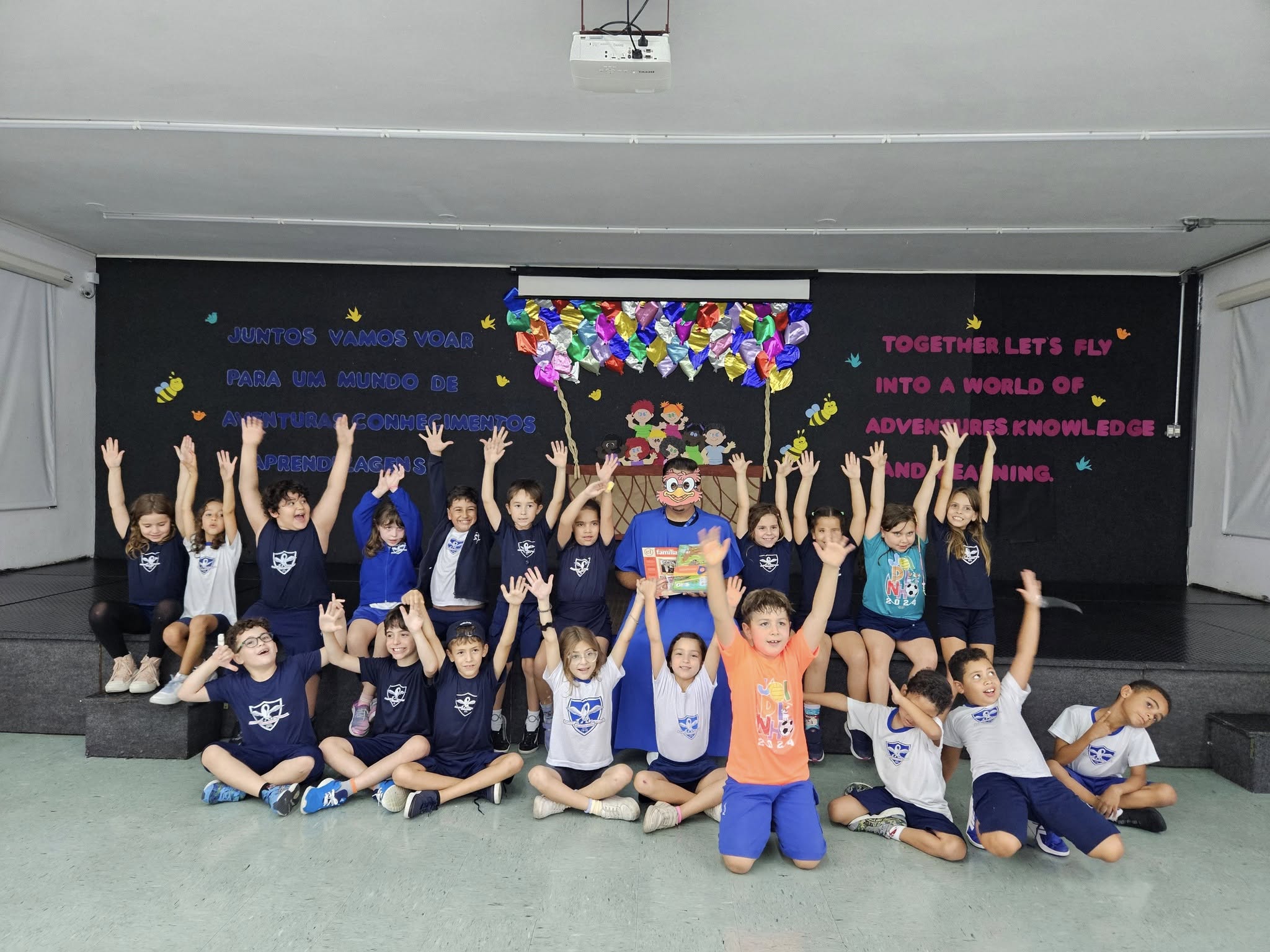 Na tarde de sexta-feira, 14, as turmas do 2° ao 4° ano do Ensino Fundamental receberam a visita do professor Corujão, durante o momento especial de entrega dos materiais da Escola da Inteligência.