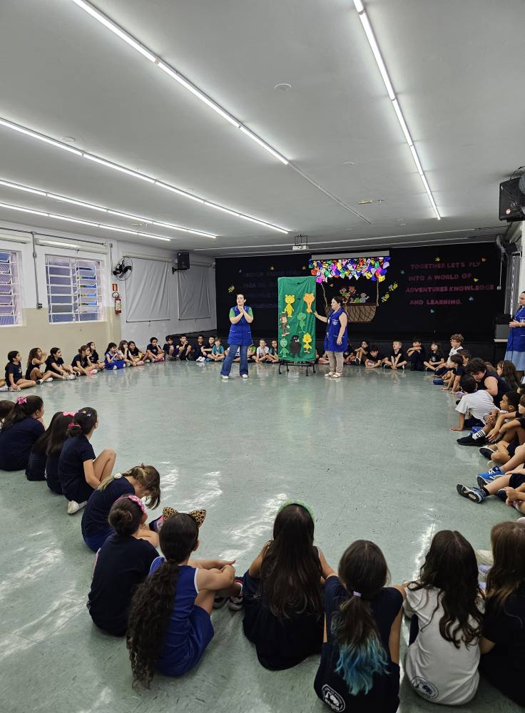 Para os 4º anos, a surpresa foi a participação dos personagens humanos, que chegaram para acompanhar as histórias dessa turminha.