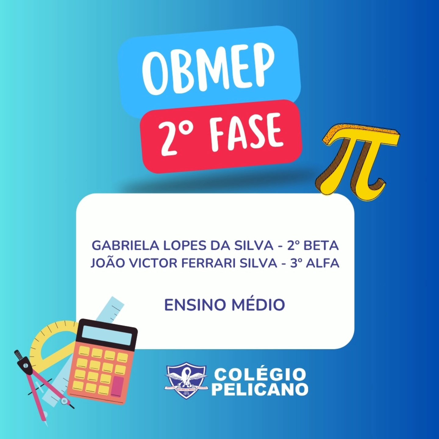 Confira a classificação dos nossos alunos do Ensino Fundamental II e Médio para a 2ª fase da olimpíada.