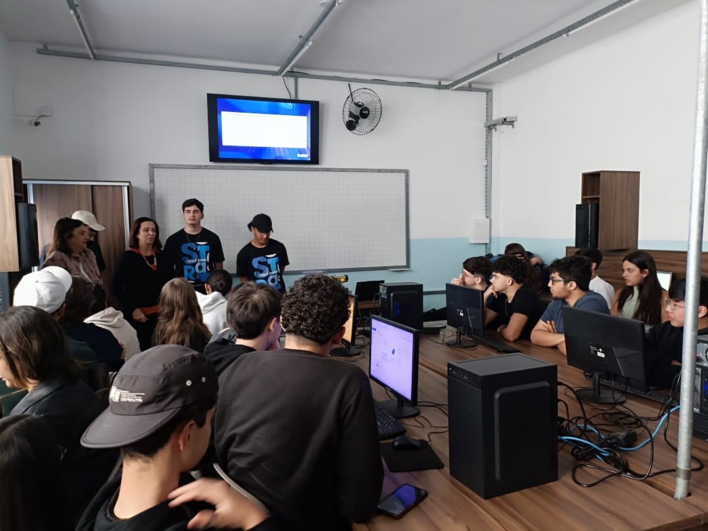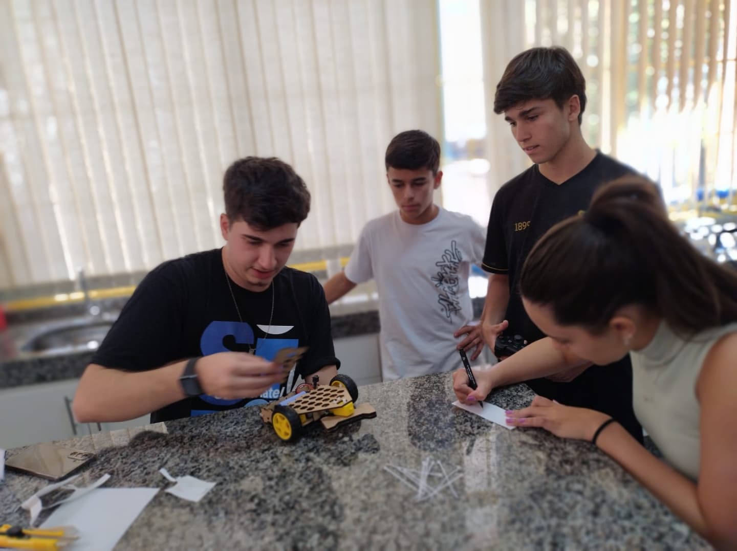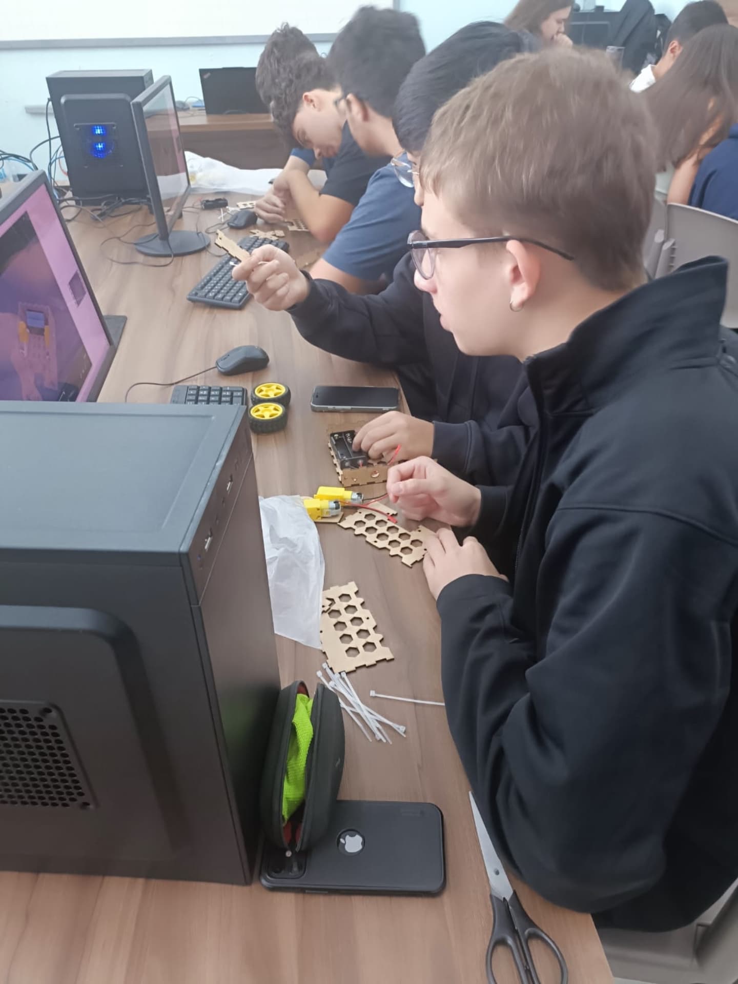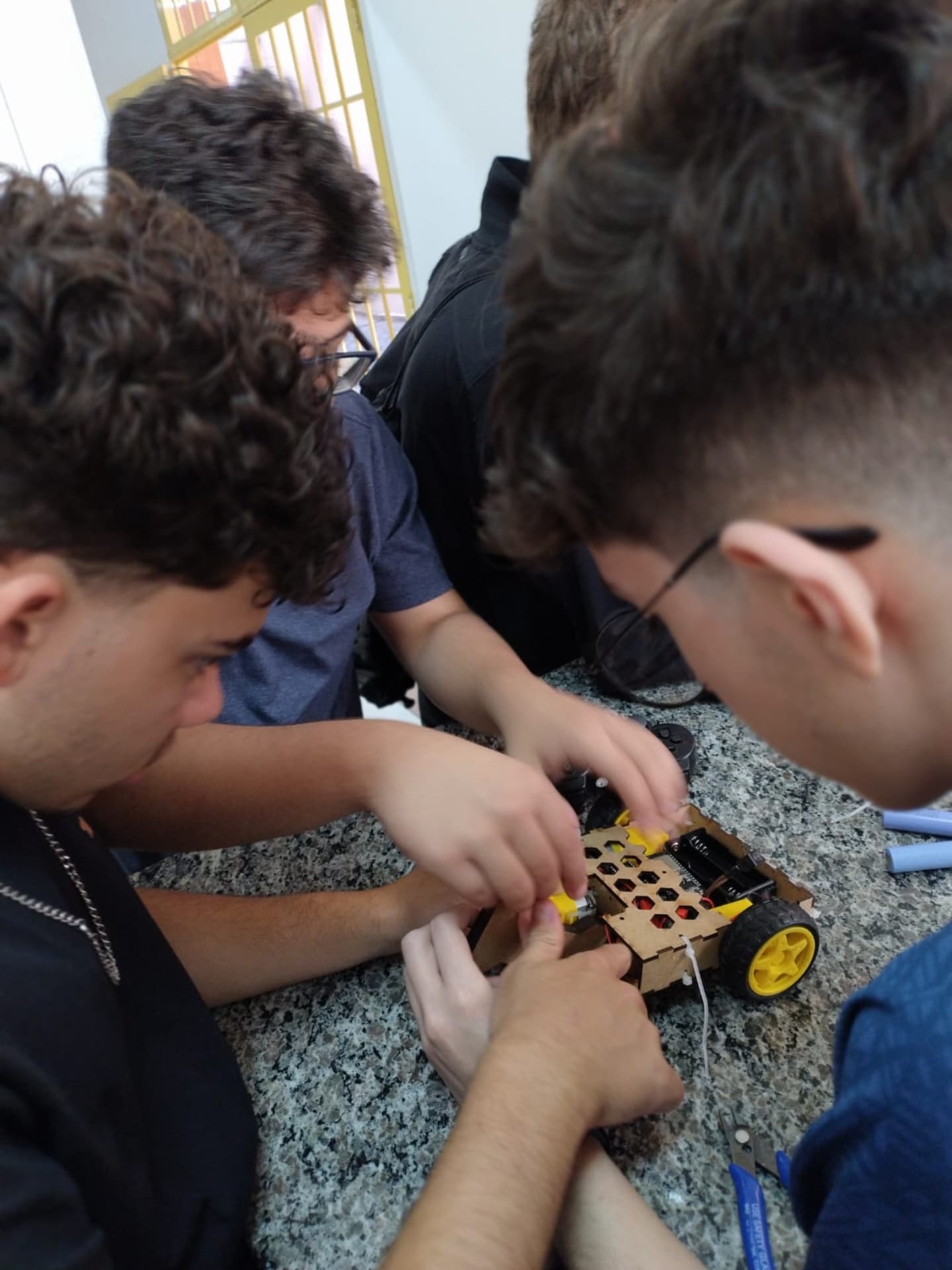 No período da manhã, os estudantes tiveram uma breve exposição sobre as competições e suas regras. Em seguida, partiram para a confecção de seus robôs.