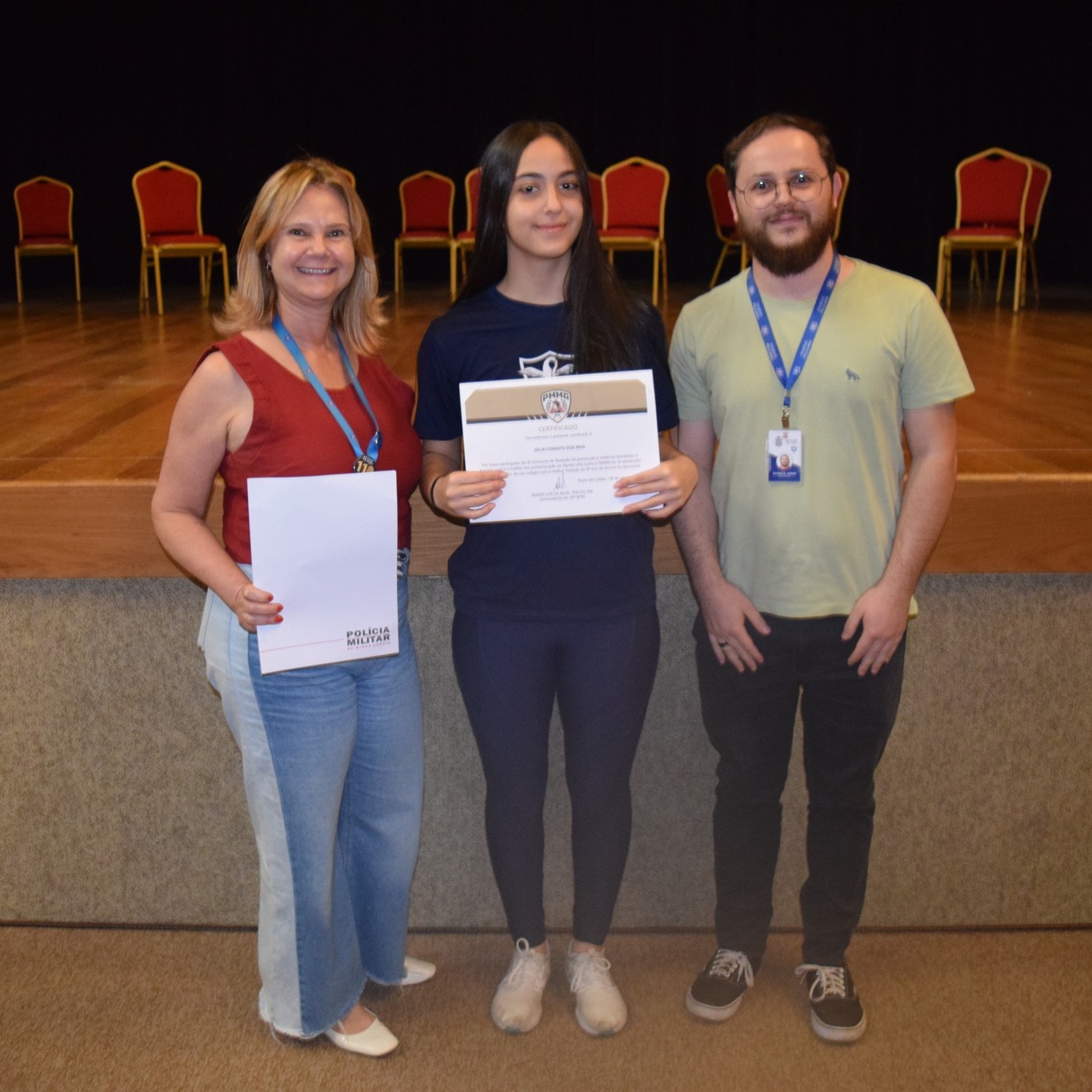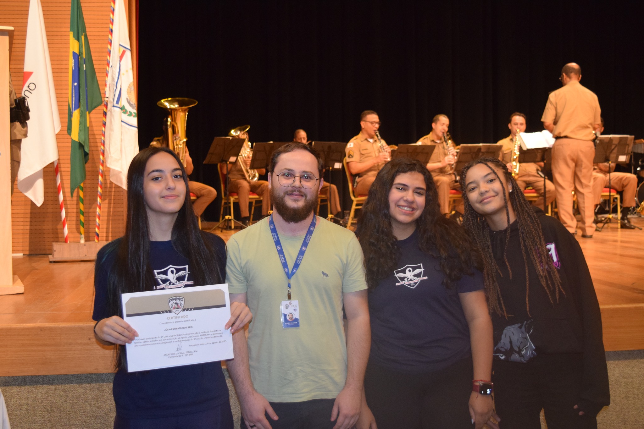 PREMIAÇÃO | Julia Fonsato dos Reis, aluna do 9° ano C, recebeu o prêmio de melhor redação do colégio no Concurso da Polícia Militar de Minas Gerais.