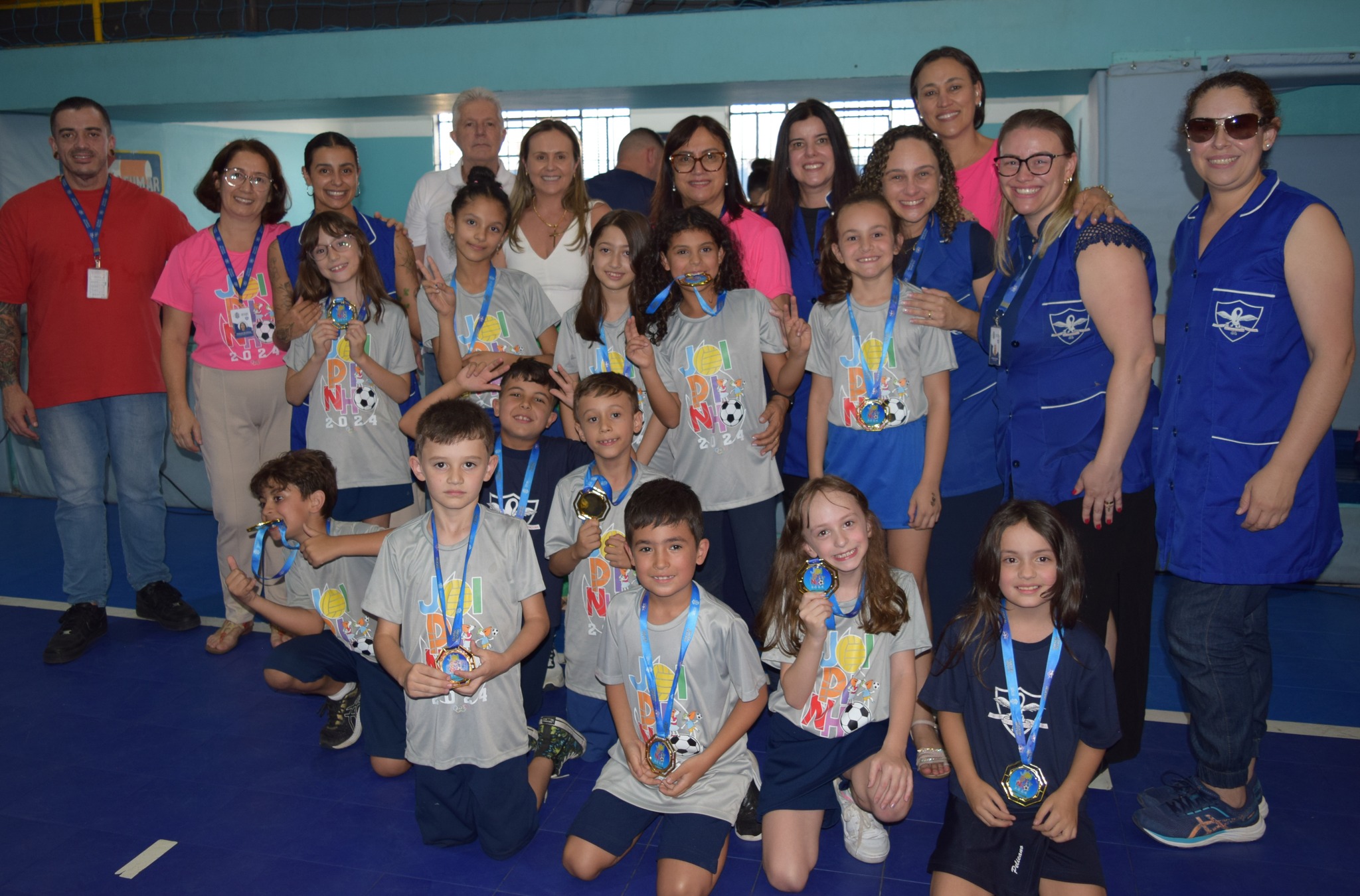 No dia 17/10, encerramos o JOIPINHO das turmas do Ensino Fundamental I – 1º ao 5º Ano. Depois de uma semana de jogos, brincadeiras e muita interação, foi o momento de premiar as equipes campeãs e homenagear todos os alunos que participaram, com a medalha de participação. Além das atividades esportivas, a arrecadação de bolachas, em prol da AVOCC foi sensacional! Com o apoio das famílias, que sempre estão presentes em todas as atividades do Colégio, os alunos arrecadaram mais de 1.200 quilos de bolachas. A entrega aos responsáveis pela instituição foi emocionante. Missão cumprida, agradecemos todos os envolvidos em mais uma edição do Encerramento do JOnosso tão querido JOIPINHO.