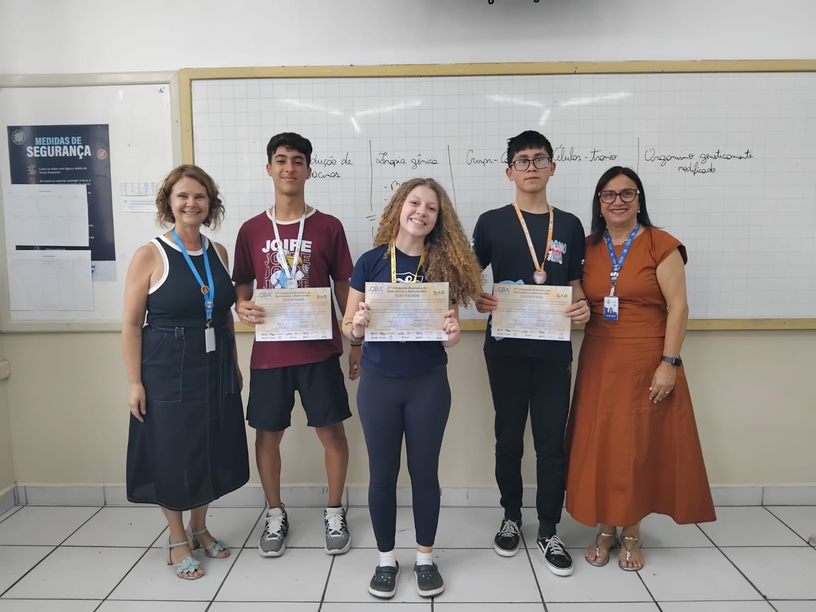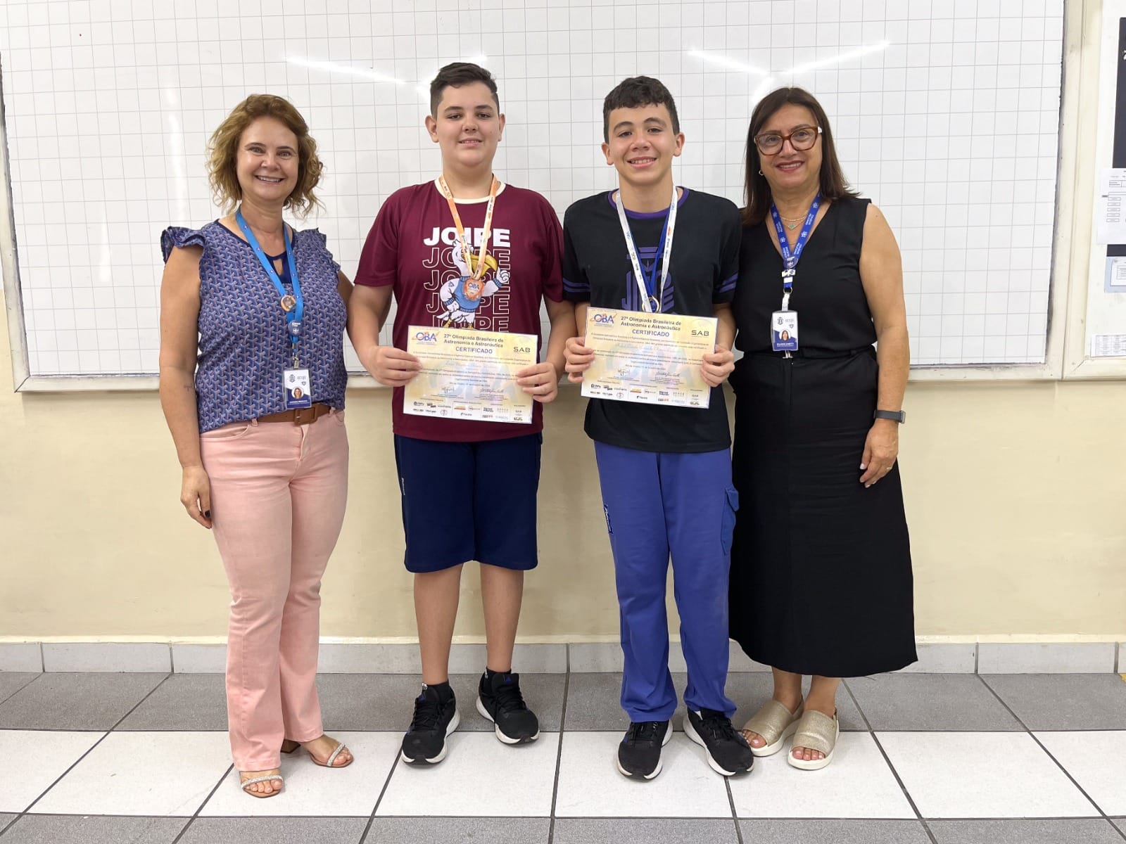 Com muita alegria, a equipe pedagógica fez a entrega de medalhas aos alunos contemplados na Olimpíada Radical de Matemática (interna) e na Olimpíada Brasileira de Astronomia (OBA).
