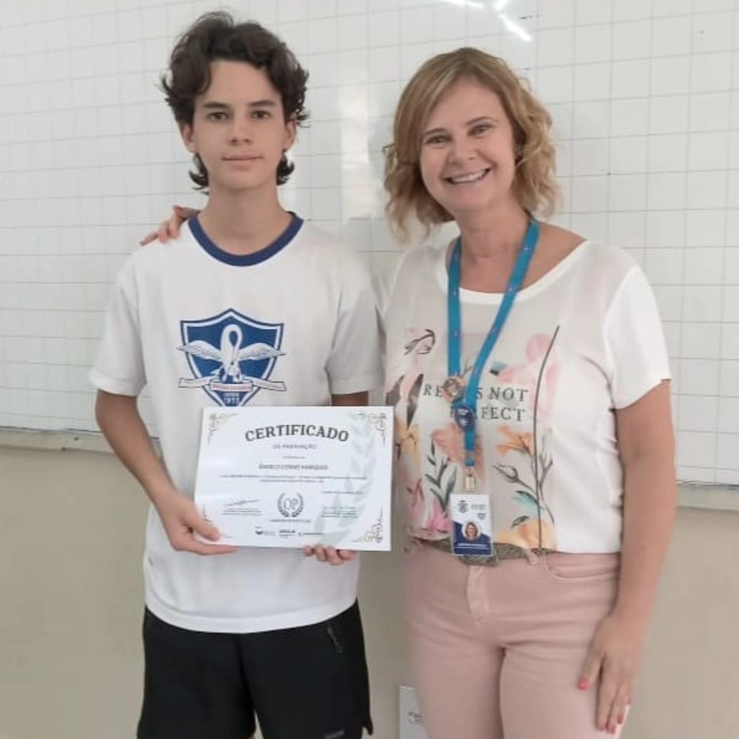 Os alunos do 9⁰ ano, Victor Villas Boas Nascimento e Ângelo Cosme Marques, receberam hoje medalha de bronze e certificado de Honra ao Mérito, respectivamente, por suas excelentes participações na Olimpíada de Português.