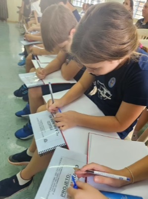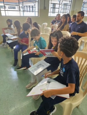 O projeto "Da palavra ao texto", desenvolvido pelas professoras e alunos do 1° ano do Ensino Fundamental, foi finalizado no mês de novembro e, na segunda-feira, 25, apresentado aos pais e familiares.